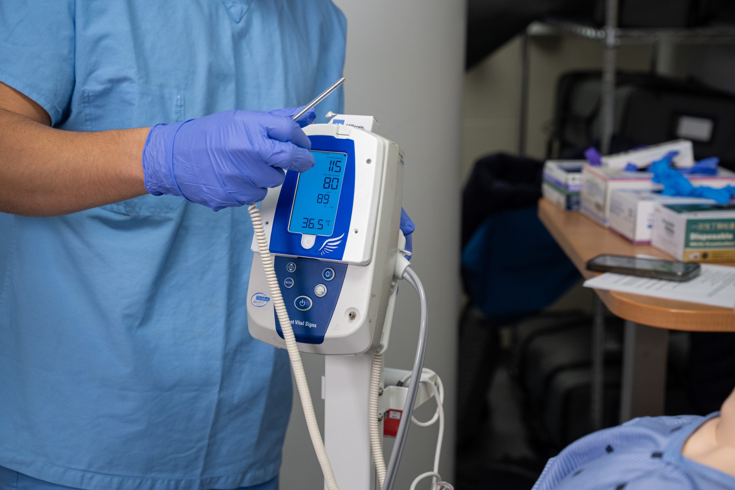Temperature, heartbeat, oxygen rate, systolic and diastolic pressure. Compatible with low, medium, and high-fidelity manikins or with simulated/standardized patients,