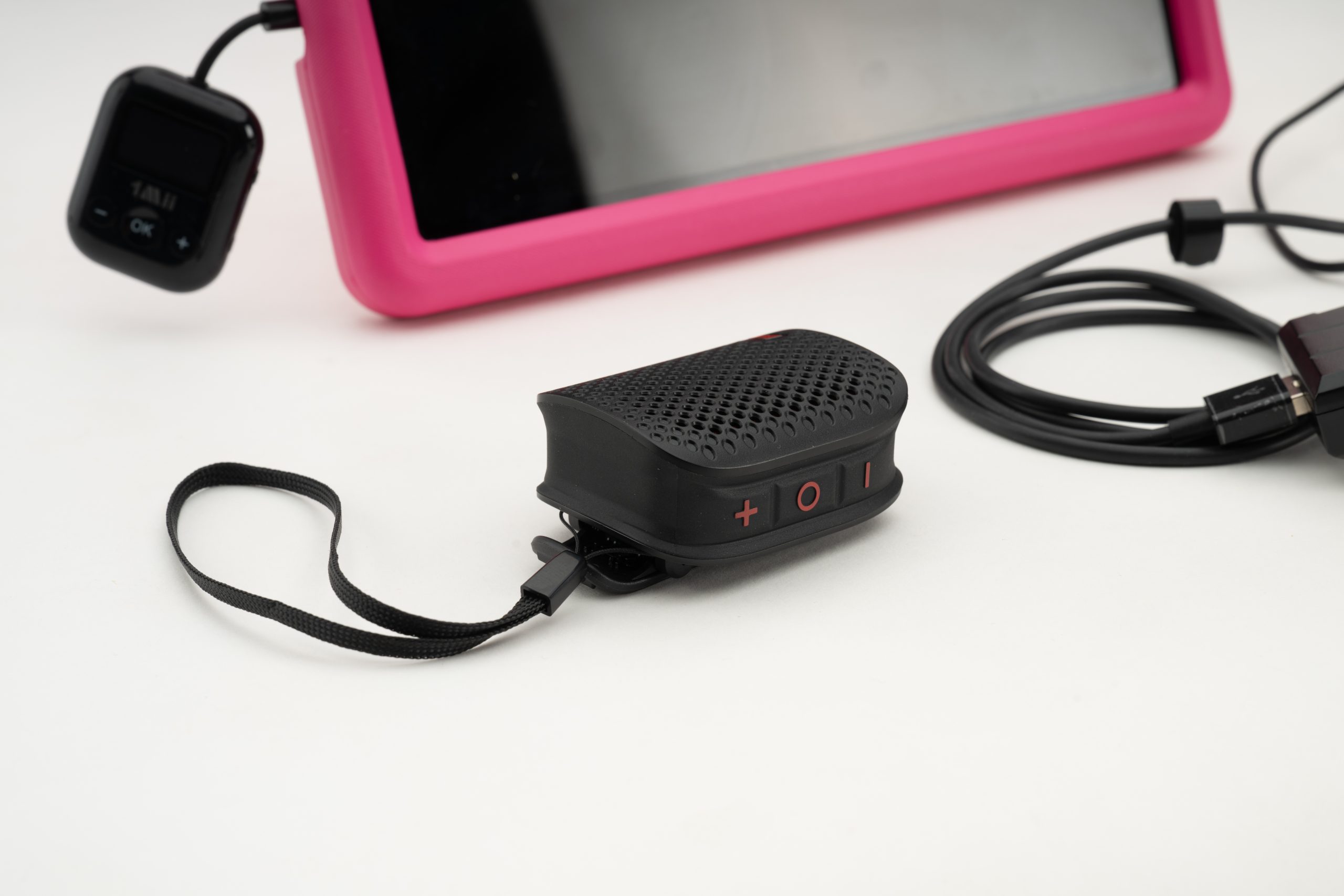 - Miniature speaker, with belt clip and magnet